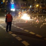 Ein kleiner Nachtschnappschuss am Zülpcher Platz: ein kleines Funkenfeuerwerk bei Gleisarbeiten.