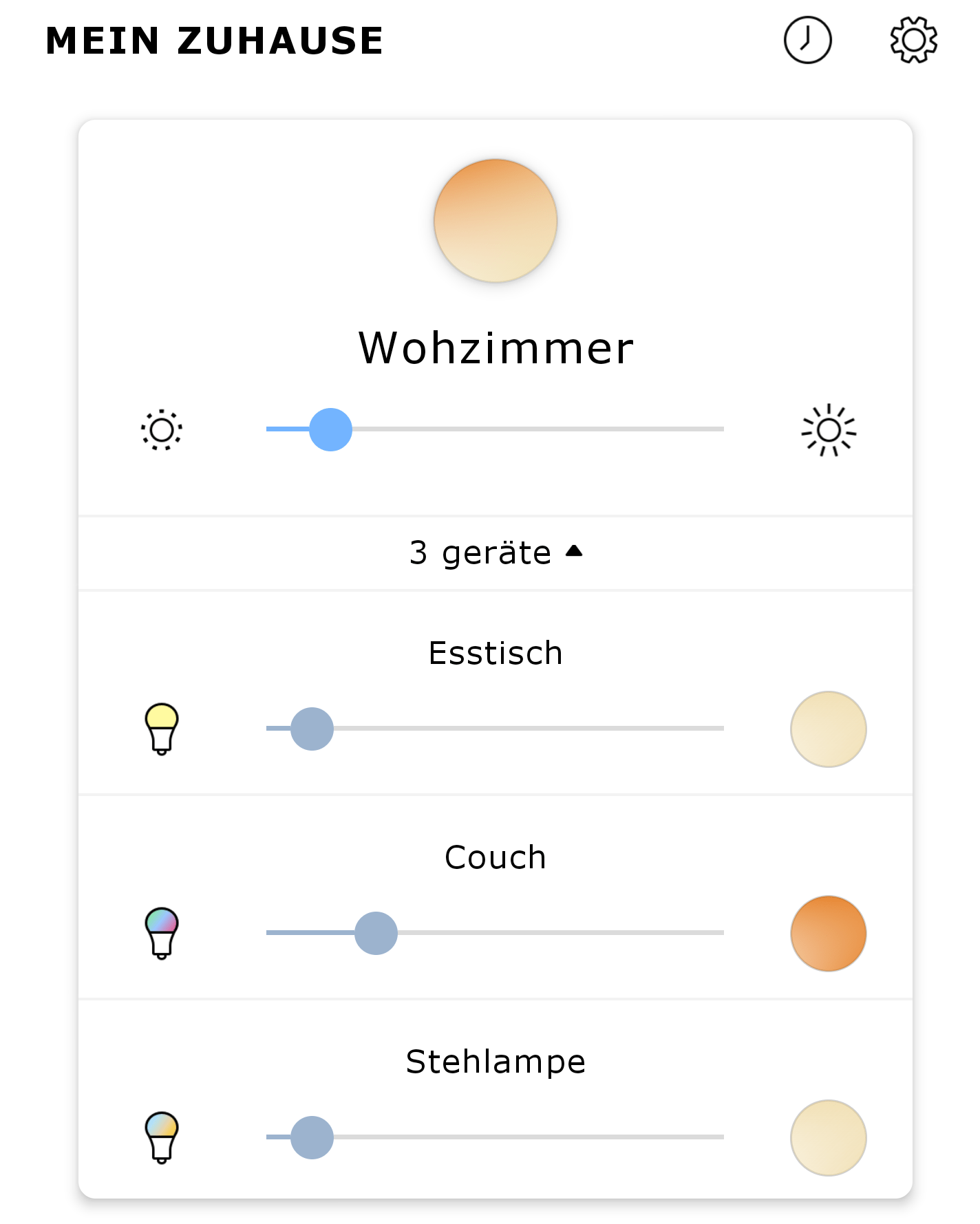 In der App kann man dann die Lampen steuern, sowohl in der Helligkeit, als auch…